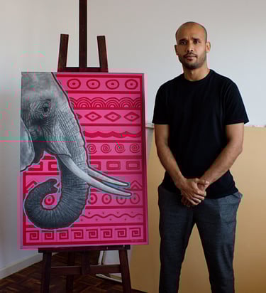 In 2017, after settling in Mozambique, he found new sources of inspiration in the richness of local culture, social dynamics, and natural life. It was also in this context that he began his career as a mural painter, expanding the reach of his work into public space and community engagement.